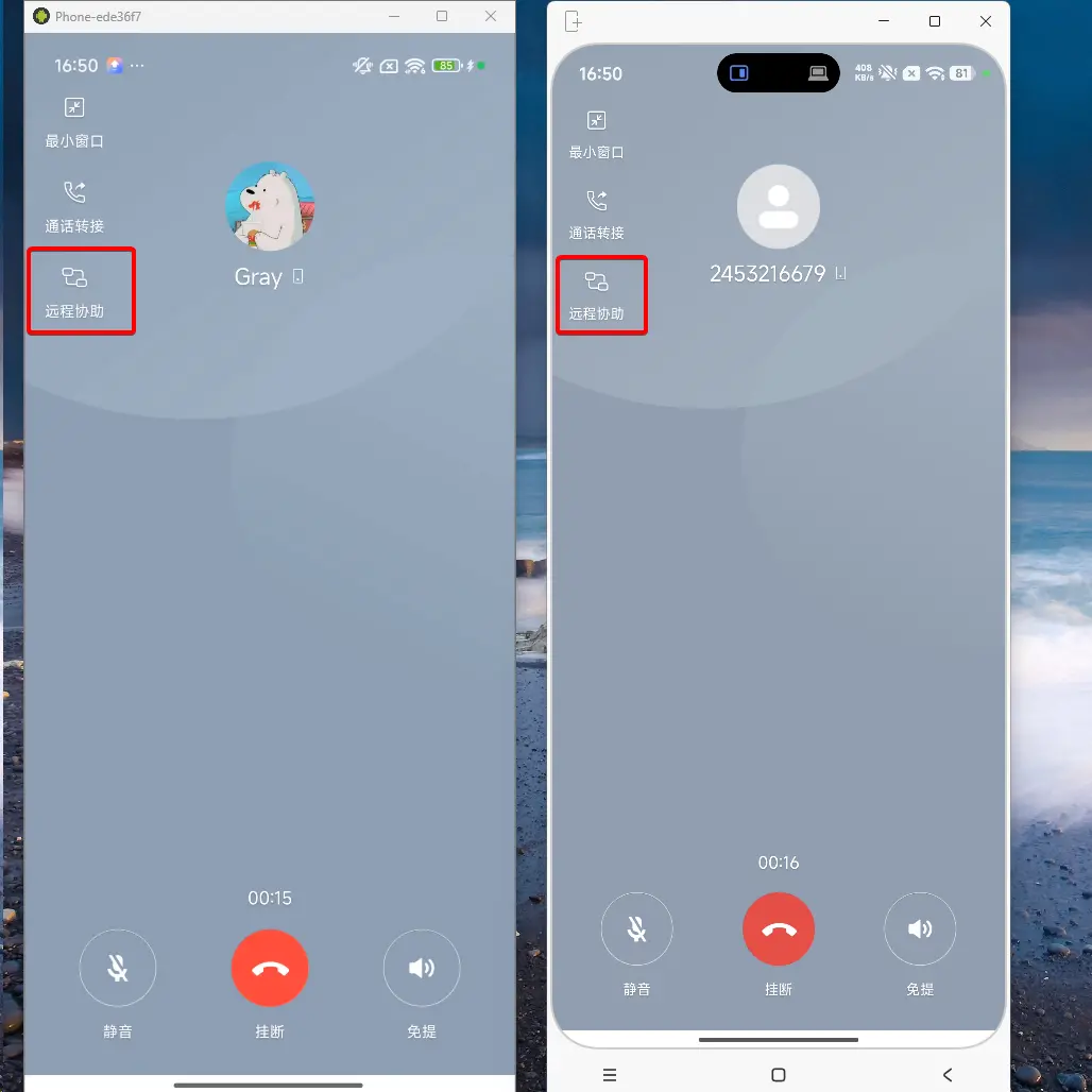 接通后能看到,屏幕左侧有个「远程协助」的按钮。