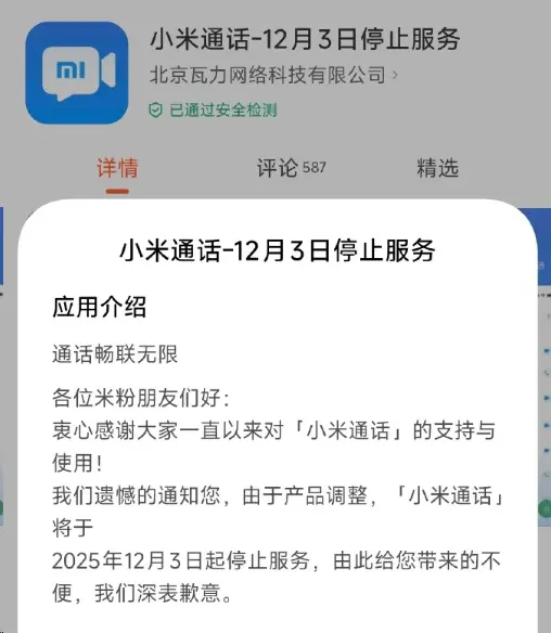 最近小米通话发布了个公告,表示将于 2025年12月3日停止服务。