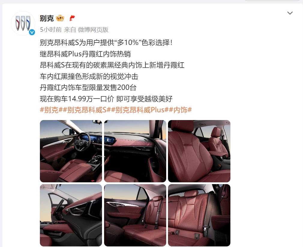 6月25日,别克昂科威S 25T进享白金版新增丹霞红内饰,限量发售200台,现在购车14.99万一口价。官方表示,新颜色是在现有的碳素黑经典内饰上新增丹霞红,进一步丰富用户个性化需求。